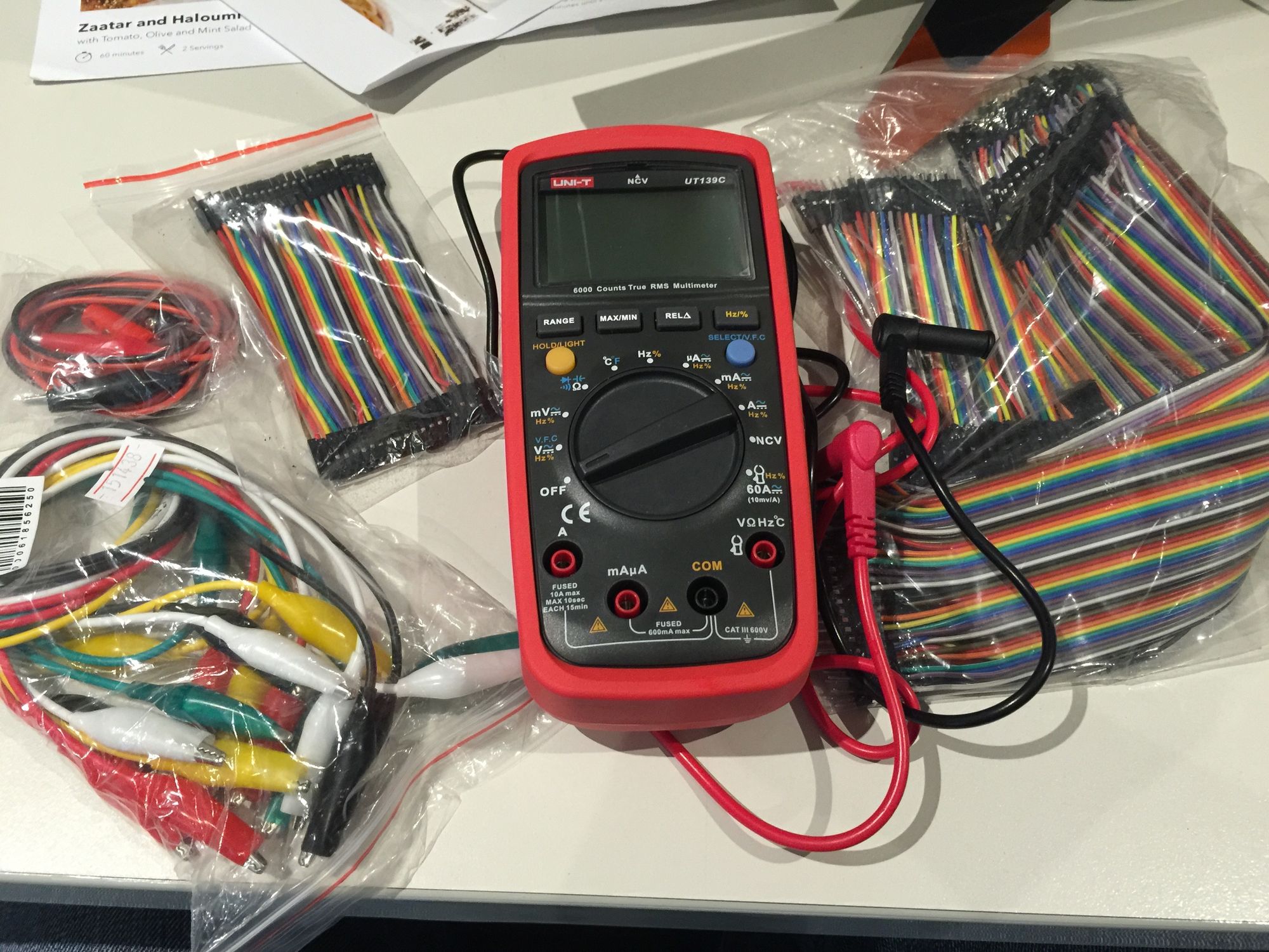 My old $5 multimeter was far from useful. Reading a 9V DC power adapter as 14.3V was not a good sign so I picked up this one. Also some new cables to play with (not necessarily to be used in this project), an Arduino Uno (Iduino Uno for those with a sharp eye) and a BLE Shield. So far my plans are coming together.